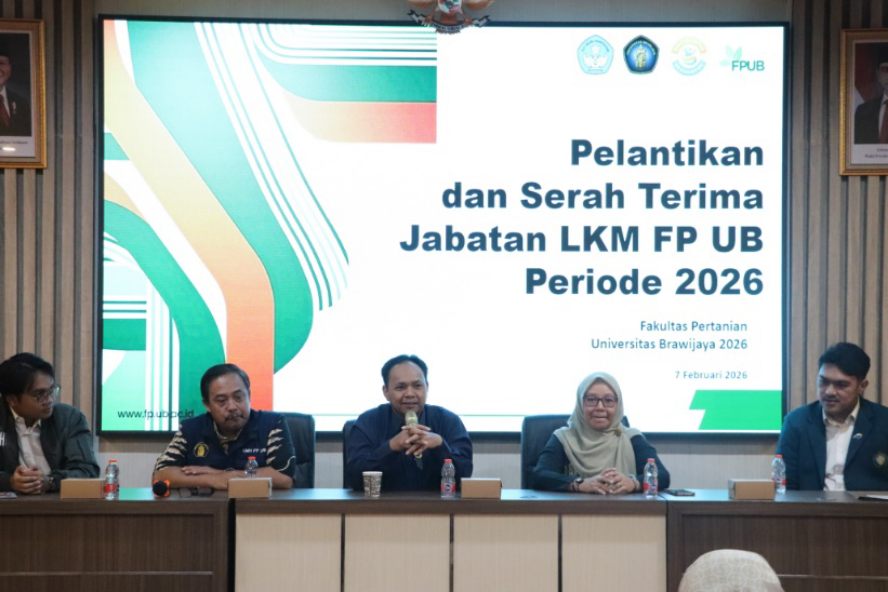 Reportasemalang – Fakultas Pertanian Universitas Brawijaya (FP UB) resmi melantik kepengurusan Lembaga Kedaulatan Mahasiswa (LKM) tahun 2026. Bertempat di Gedung Sentral FP UB, prosesi pelantikan dihadiri langsung Dekan FP UB, Wakil Dekan III Bidang Kemahasiswaan, Alumni, dan Kewirausahaan Mahasiswa, Kasubbag Akademik, serta Staf Ahli Wakil Dekan III.