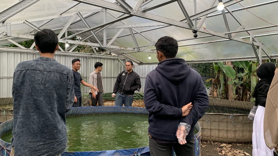 Di lahan tersebut, peserta diperkenalkan pada siklus produksi yang saling terhubung, mulai dari budidaya lele dan ayam, pengolahan limbah organik menggunakan maggot, hingga penanaman sayuran seperti cabai dan sawi sebagai bagian dari ekosistem pangan terpadu.