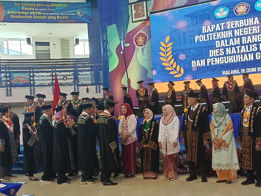 Reportasemalang – Politeknik Negeri Malang (Polinema) kembali menambah jumlah Guru Besar (Gubes). Dengan mengukuhkan 5 (lima) Gubes baru dari berbagai disiplin ilmu, bertempat di Graha Polinema, Kamis (12/6/2025).