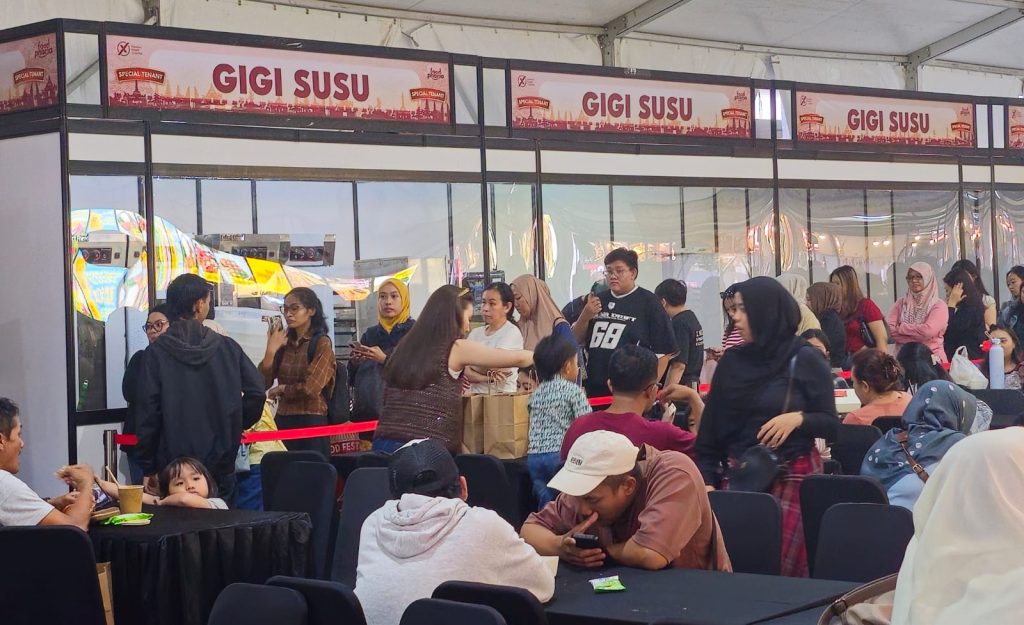Pengunjung sedang mengantri untuk mencoba produk Gigi Susu yang lagi viral. (Foto: MF/Reportase)