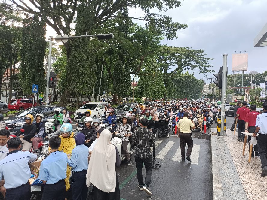 Tidak hanya masyarakat yang melintas di trotoar, takjil gratis juga dibagikan kepada pengendara kendaraan bermotor yang lewat.